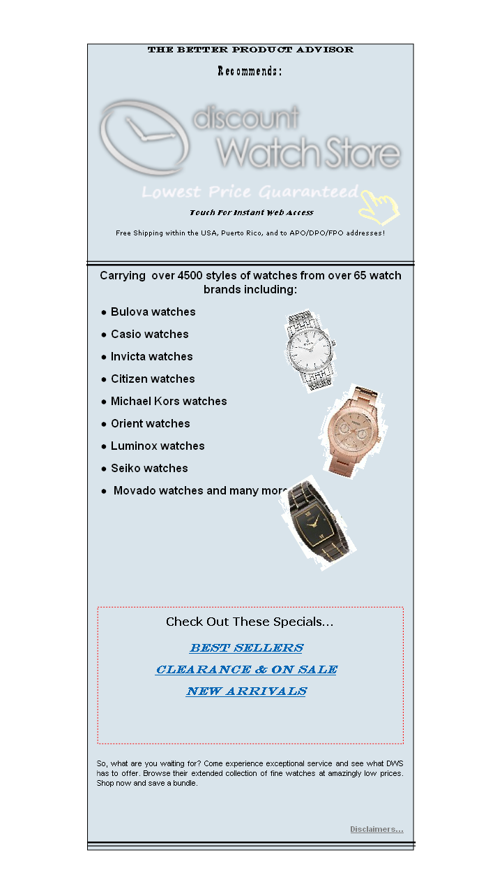75% Off Watch Warehouse Coupon, Promo Codes - July 2022 Enjoy $15 Off Luminox Watches Over $230 With Code: Limited Time: 5% OFF: Get 5% Off Lowest Price: Limited Time: 5% OFF: Enjoy 5% Off Your Orders + Free US Shipping: Limited Time: $30 OFF: Take $30 Off Your Orders Over $499+ At Watchwarehouse.com: Limited Time: $20 OFF: Get $20 Off Montblanc Accessories Over $200 Use Code: Limited Time