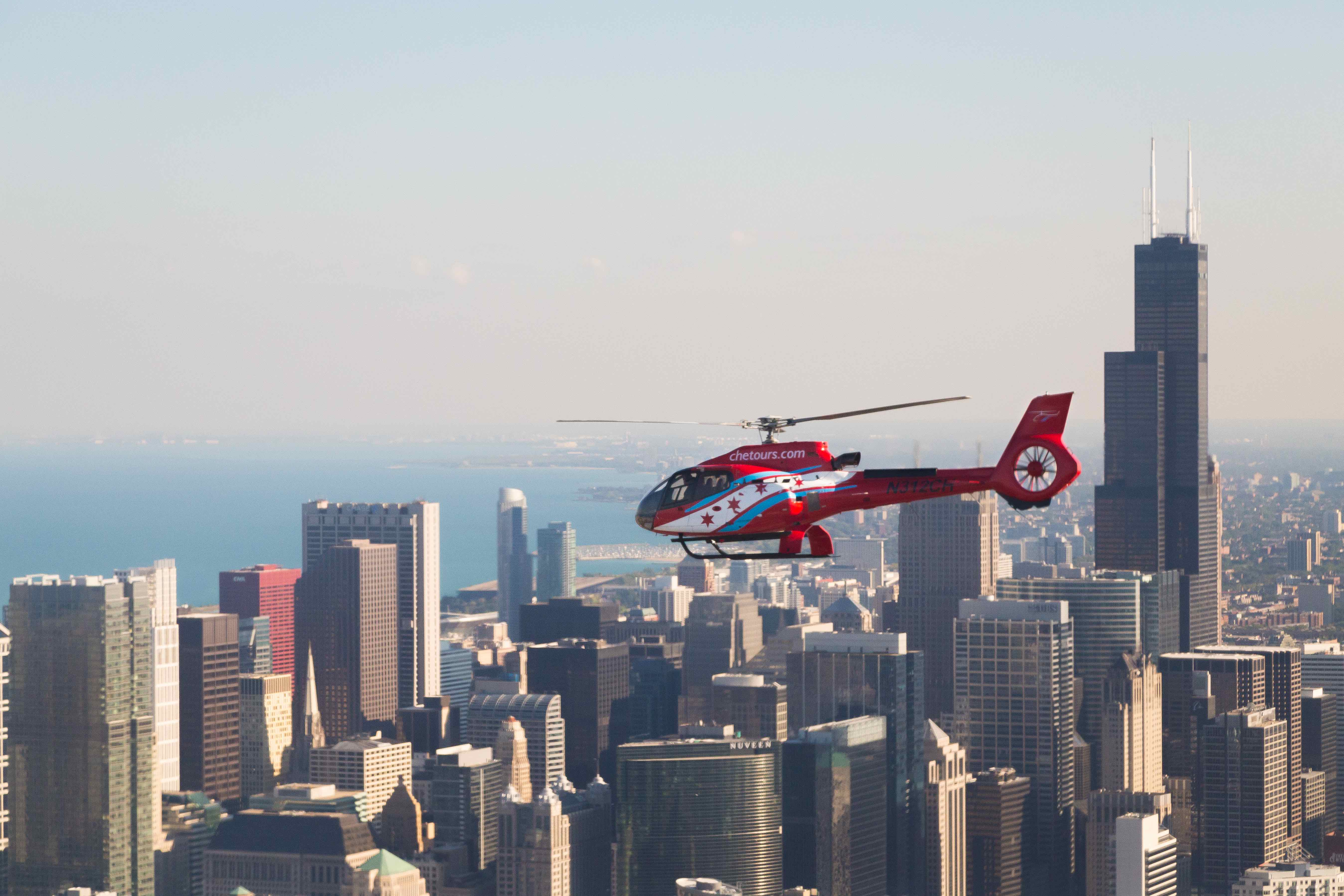 Chicago Helicopter Tours, Rides and Flights - Adrenaline Departing from Wood Street Vertiport. Helicopter Tour Chicago for 4 - 15 Minute Flight. Price PP: $149. Our Price PP: $99. You Save PP: $50 (34%) Lowest Price Guarantee More Info.