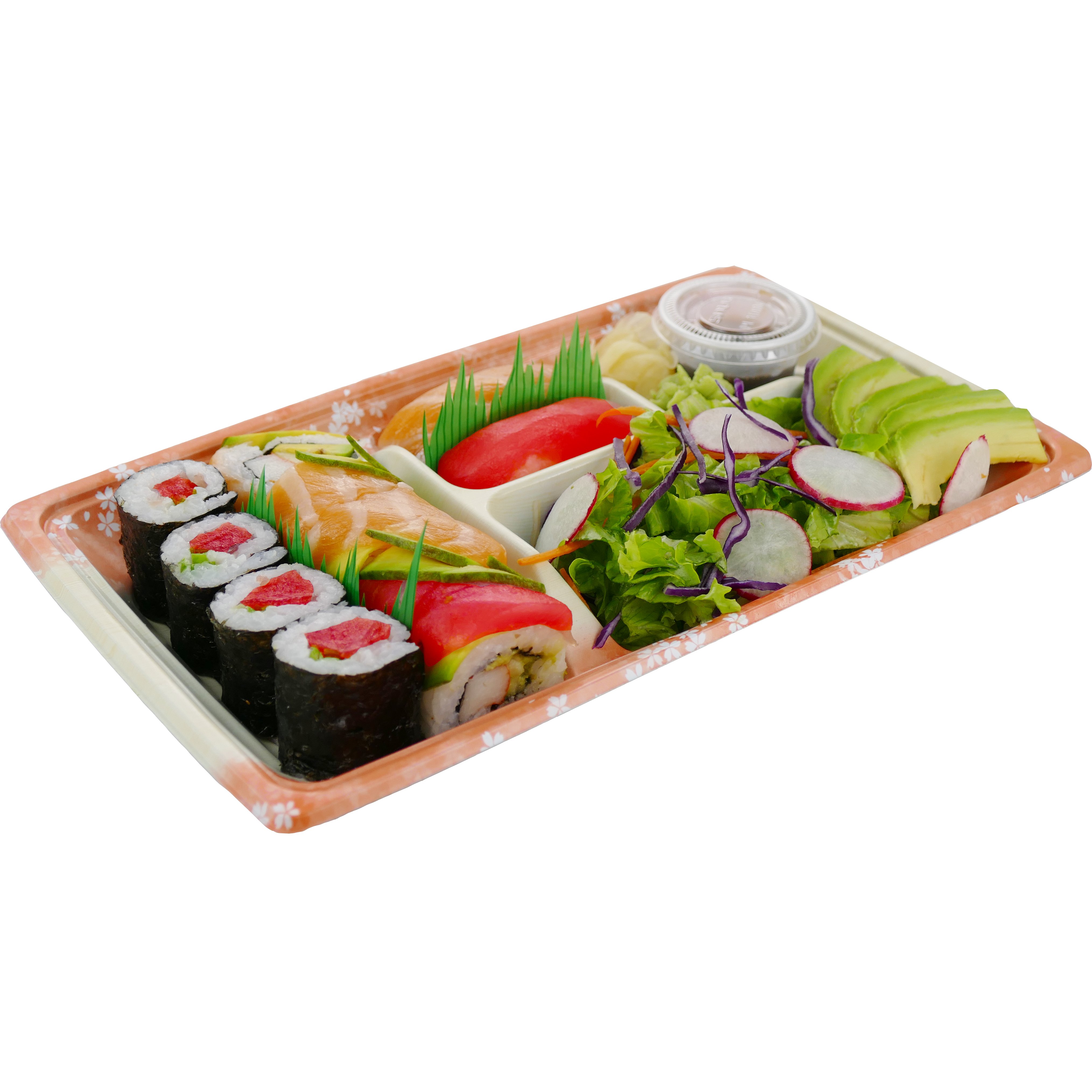 Advanced Fresh Concepts Chef Sampler Sushi, 10.75 oz - Kroger Cholesterol 30mg 10%. Sodium 550mg 23%. Total Carbohydrate 40g 13%. Dietary Fiber 2g 8%. Sugar 8g. Protein 9g. *The % Daily Value (DV) tells you how much a nutrient in a serving of food contributes to a daily diet. 2,000 calories a day is used for general nutrition advice. Ingredients. White Rice , Brown Rice , Wasabi , Pickled Ginger , Soy ...