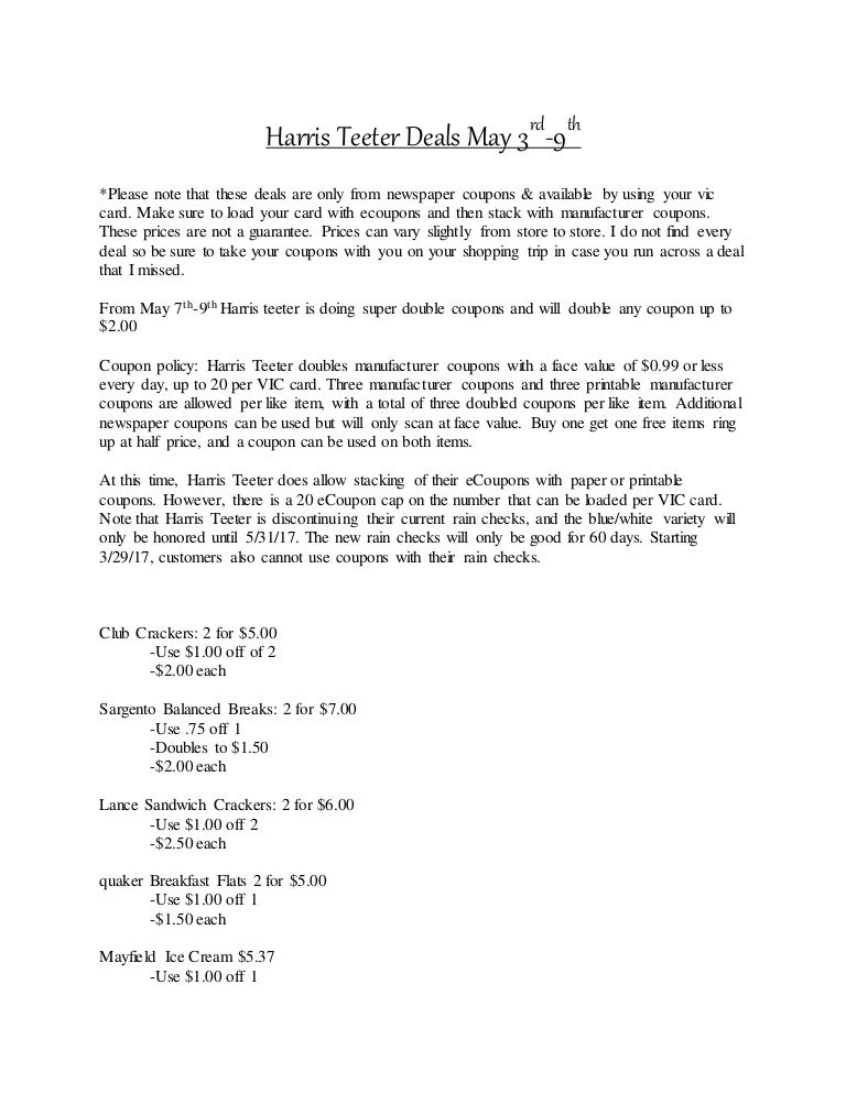 Do not double coupon. Harris Teeter 5-Day Sale and new e-Vic deals Coupons with a face value of $0.99 or less are doubled automatically everyday (unless the coupon indicated Do Not Double). Harris Teeter will double up to 20 coupons per day, per household. How To Use Coupons at ShopRite | Living Rich With Coupons® The card is also required to clip ShopRite Digital eCoupons. 2. Take Advantage of ShopRite's Double Coupon Policy. All coupons $0.99 and under are doubled at ShopRite stores. Most ShopRite stores fully double which means that a $0.75 coupon will double to $1.50. Coupon Policy - Harris Teeter LLC - Harris Teeter Digital coupons will not double or triple. A digital manufacturer coupon cannot be combined with a paper or internet manufacturer coupon. If a digital manufacturer coupon and a paper manufacturer coupon are presented for the same item, the best value will be redeemed at checkout, including any double or triple value promotions. DoubleTree by Hilton Promo Codes, Coupons 2022 - RetailMeNot.com Today's DoubleTree by Hilton Top Offers: Up to 50% Off Sunday Nights With The 3 Day Long Weekender Package. Up to 20% Off Your Stay When You Plan In Advance. Coupon Type. Available. Total Offers. 5. Home › Travel › Hotels › DoubleTree by Hilton.