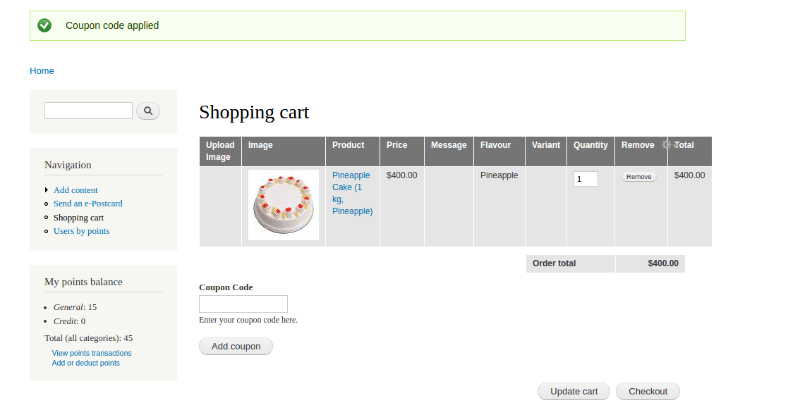 Coupon code for full cart
